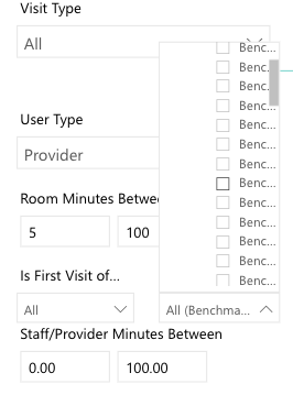 The benchmarking report offers access to reports similar to those found in Productivity or Staff Utilization reports, along with guidelines that indicate which quartiles the performance falls under.